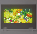 透明膜の効果により、ガラス本来の透明性を確保しながらも、光沢感・鮮明感に優れた映像表示が可能です。