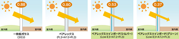 日射熱遮蔽性能【日射熱取得率(η値)】の比較